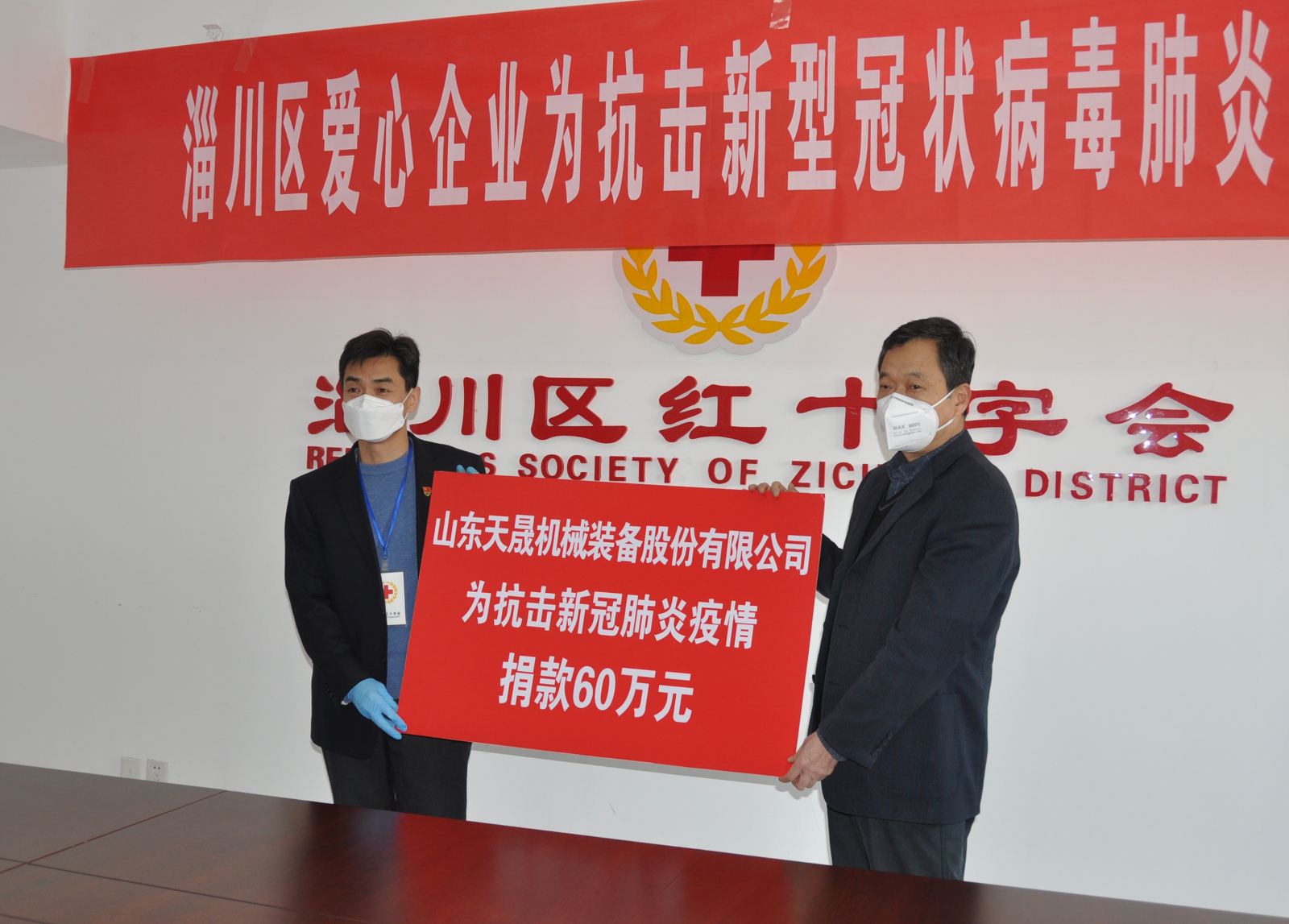 疫情无情人有情,危急关头显大爱。近日,山东天晟机械装备股份有限公司向区红十字会捐款60万元,用于淄川区新冠肺炎防控工作,以实际行动支援疫情防控阻击战。